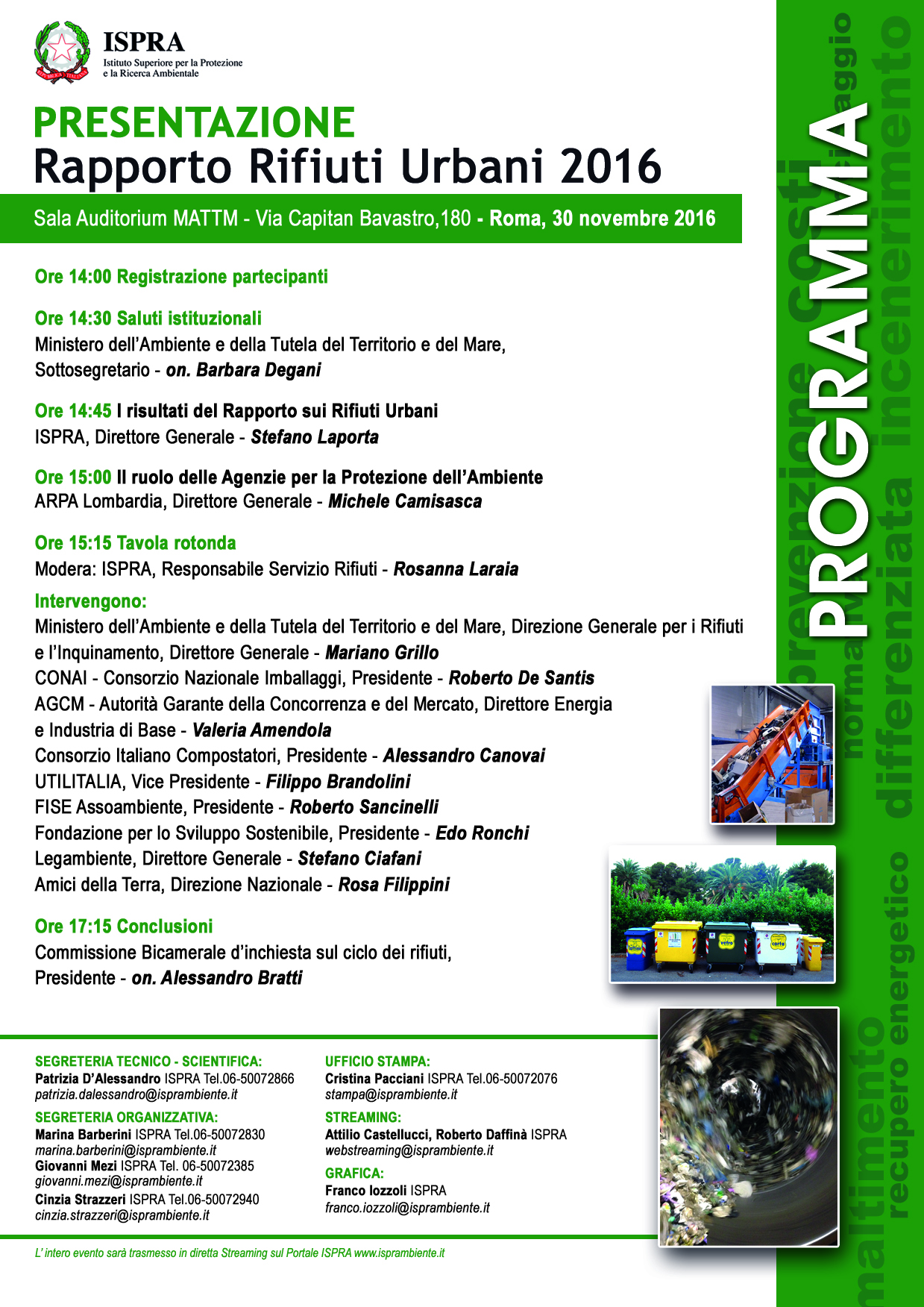 ISPRA “Rapporto Riufiuti Urbani 2016” (Roma, 30 novembre 2016)