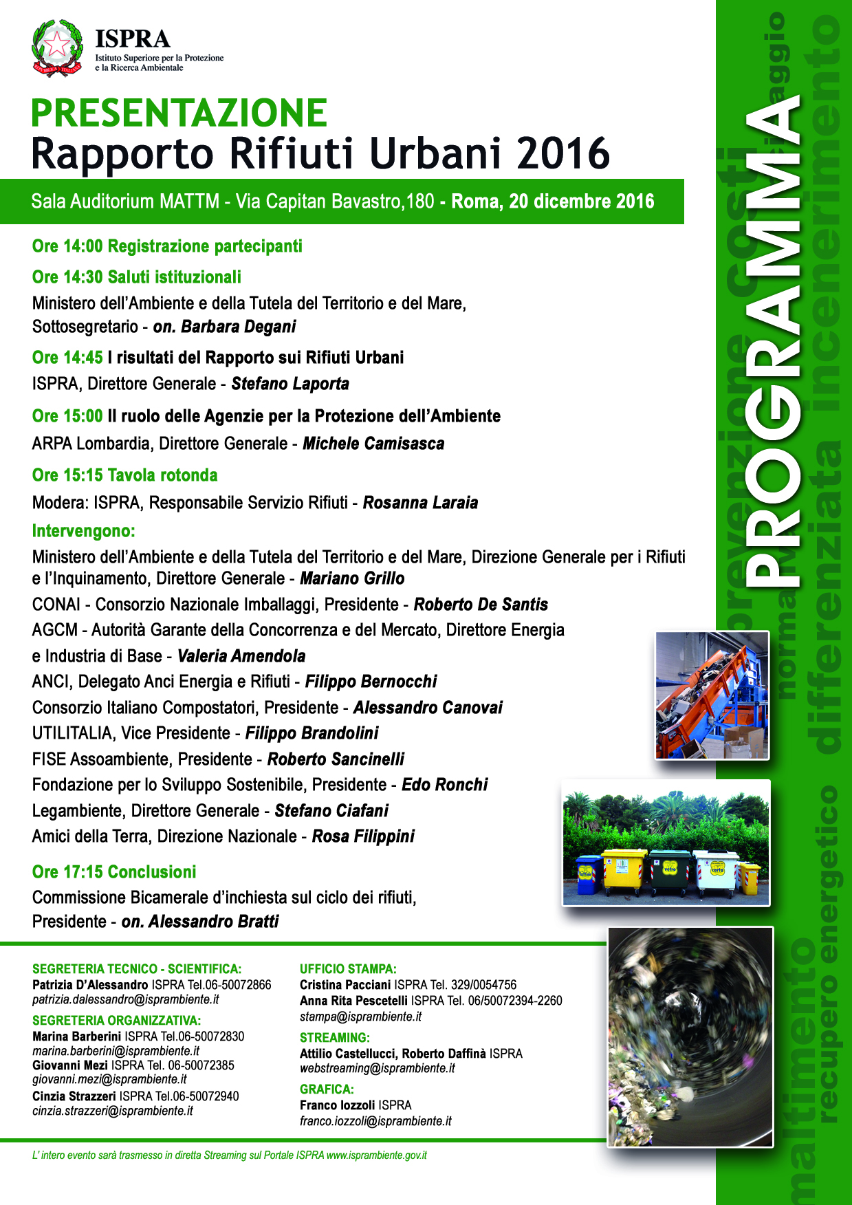 Presentazione “Rapporto Rifiuti Urbani” (Roma 20 dicembre 2016)